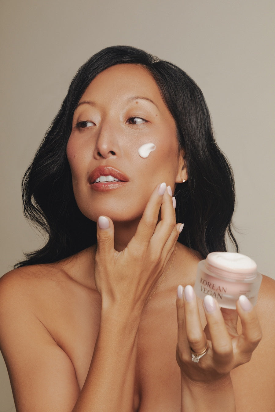 The fragrance of KVBeauty's skin cream as you dab some on your cheeks and neck.