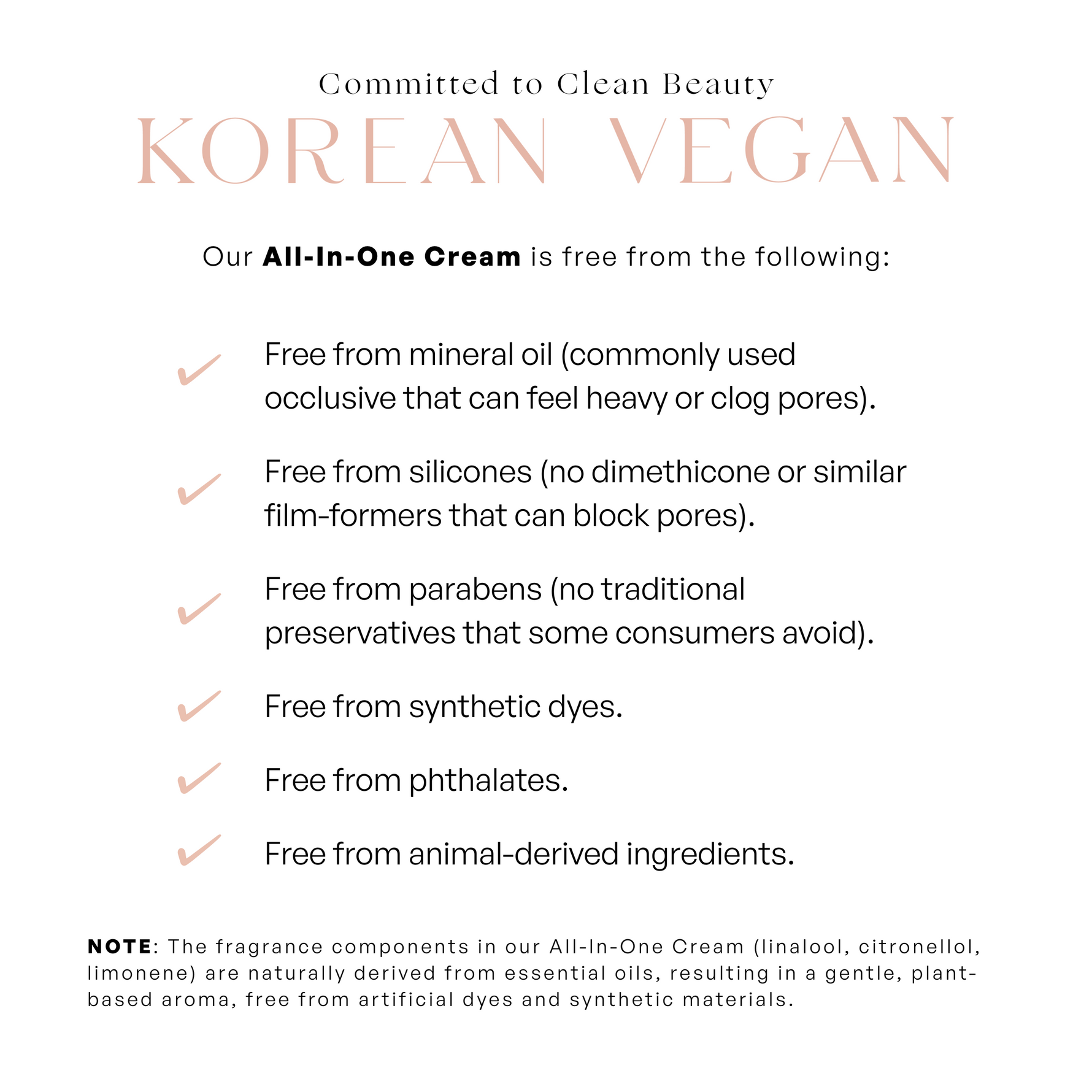 NOTE: The fragrance components in our All-In-One Cream (linalool, citronellol, limonene) are naturally derived from essential oils, resulting in a gentle, plant-based aroma, free from artificial dyes and synthetic materials.